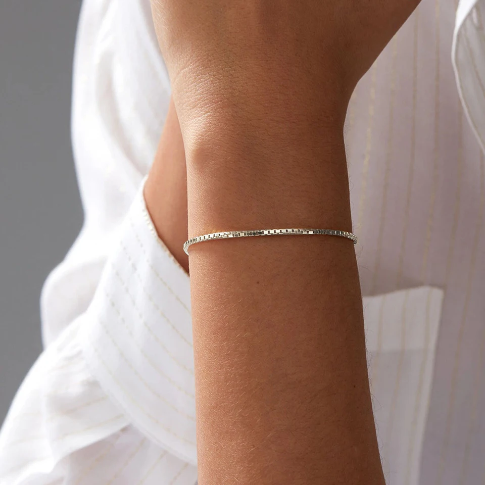 Minimalist Silver Stainless Steel Box Chain Bracelet – Unisex Gift